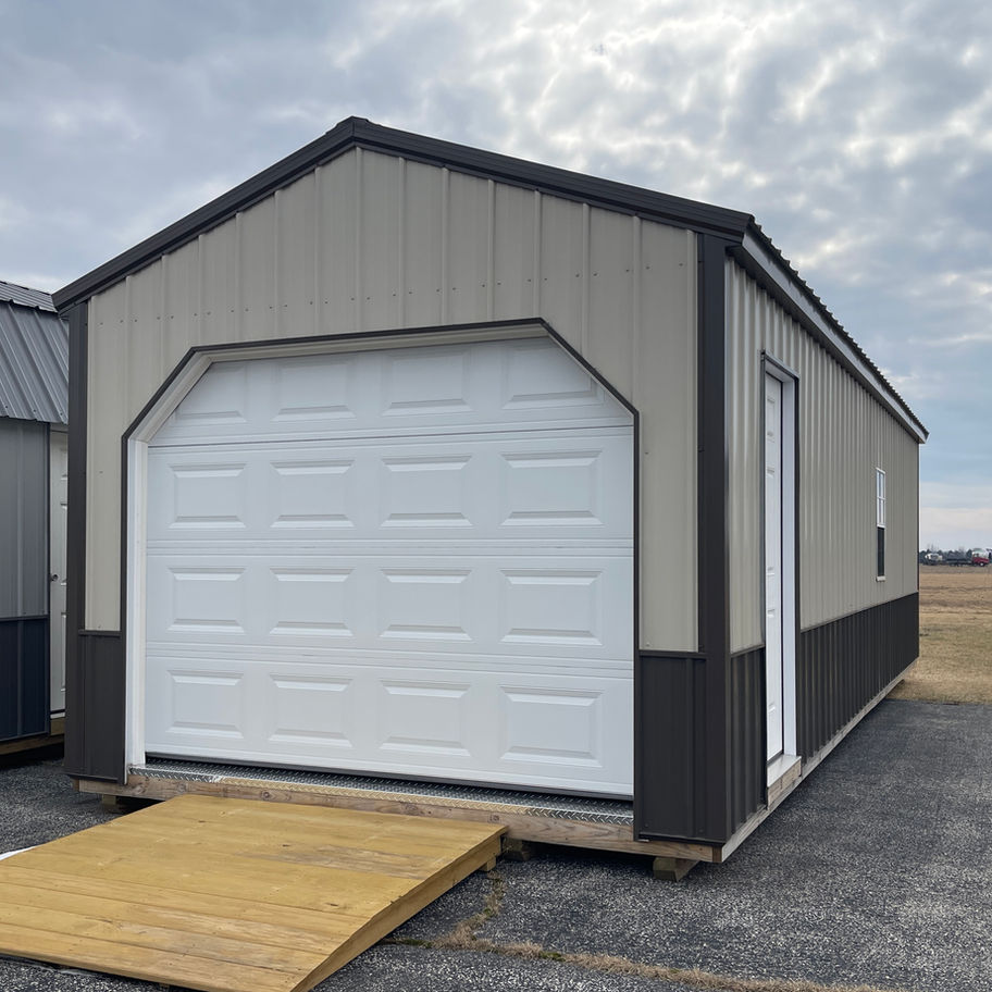 The 12x24 metal garage with wainscot from Hoosier Sheds Winamac offers durable, high-quality protection for your vehicles and equipment, combining sturdy metal construction with stylish wainscot detailing for enhanced curb appeal. Designed to meet the needs of Hoosier homeowners, this garage provides ample space and reliable shelter while reflecting the craftsmanship and customer-focused service that define Hoosier Sheds Winamac. Built for lasting performance, it ensures your investment is safe from the elements without compromising on aesthetics. Whether for storage or workspace, this metal garage is a practical, attractive addition tailored to your lifestyle. Experience the blend of strength and style that only Hoosier Sheds Winamac can deliver.